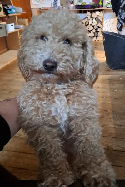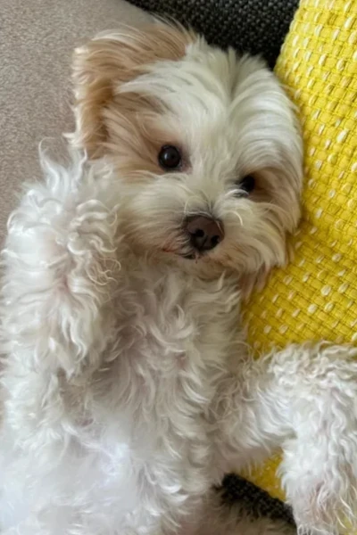 Vater Lucky: Maltipoo, weiss mit beigen Flecken Jhg. 2021 Risthöhe 24cm , 3.5kg
